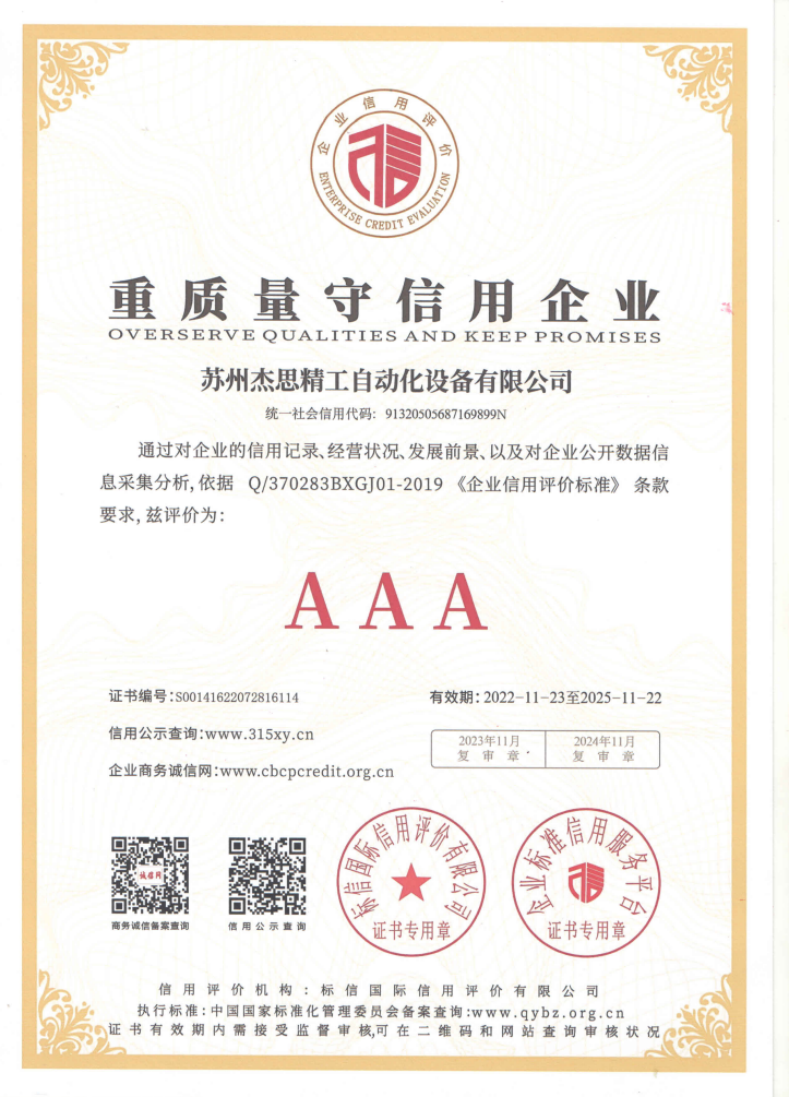 蘇州杰思精工自動化設(shè)備有限公司本著“高質(zhì)量,優(yōu)服務(wù),求發(fā)展”的精神,